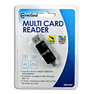 NEUF – Lecteur Connectland micro SD/micro SDX/SD/MMC connecteurs USB 2.0 et micro USB